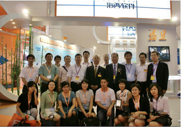 我省由福建省省長助理鄭松巖帶領(lǐng)我省軟件企業(yè)參展的“福建省海西軟件展區(qū)”,受到與會(huì)各方及有關(guān)領(lǐng)導(dǎo)關(guān)懷。福建省長助理鄭松巖、福建省信息化局副局長邵玉龍與我司黃旭先生及各企業(yè)代表在海西軟件展區(qū)前合影留念。