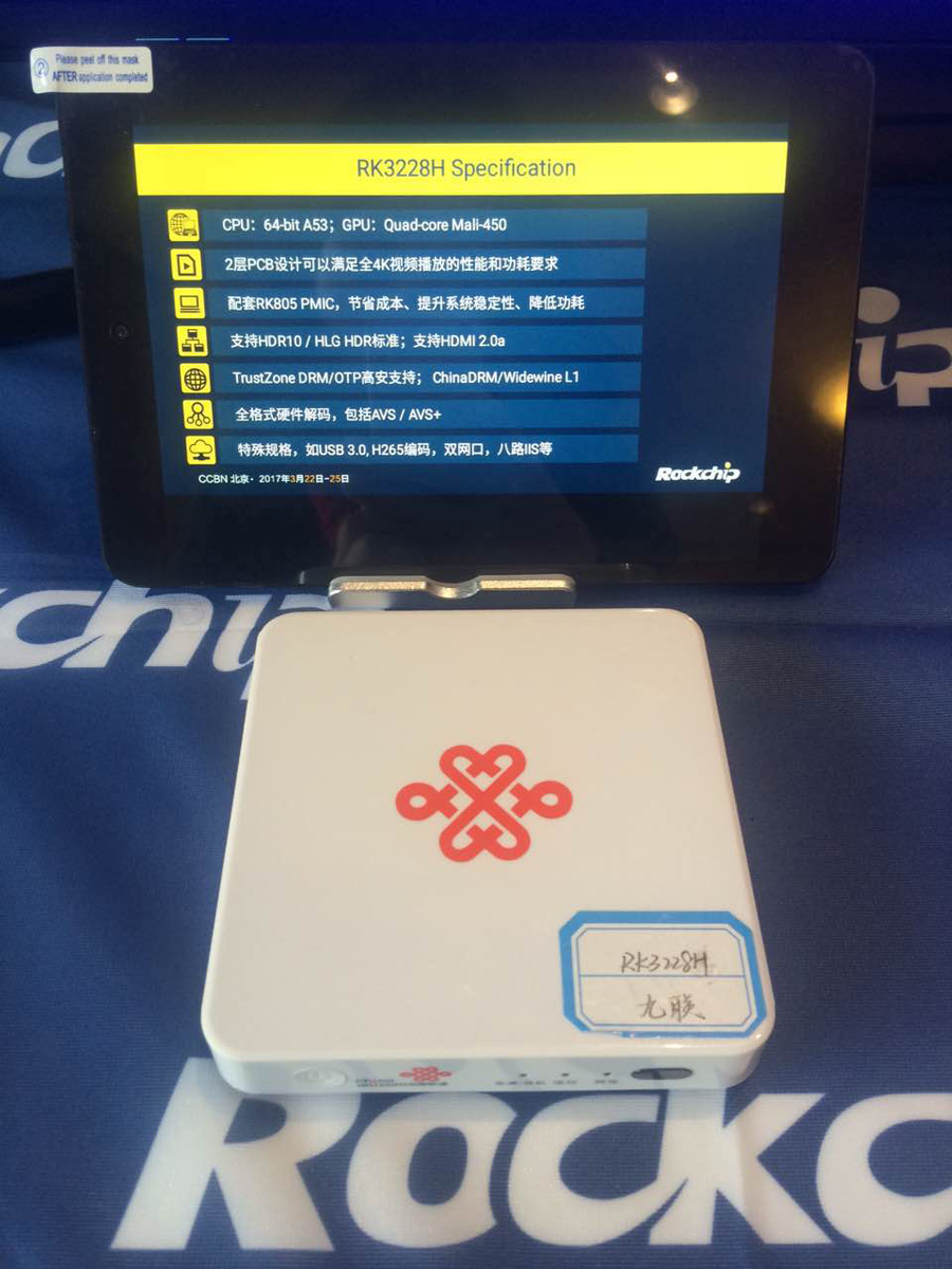 Rockchip在CCBN2017展出搭載四核超優(yōu)性價比的機頂盒芯片產品RK3228B以及高性能的機頂盒芯片產品3228H。方案亮點涵蓋: