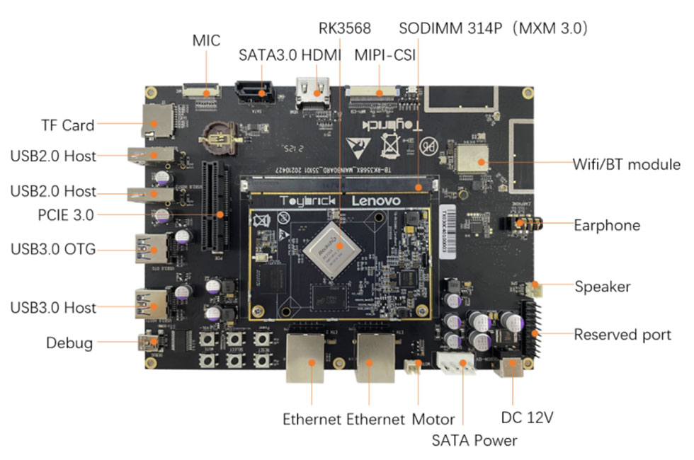 全新的TB-RK3568X是由瑞芯微Toybrick和聯(lián)想商用共同研發(fā)的高性能行業(yè)應(yīng)用開發(fā)板。TB-RK3568X采用RK3568為核心芯片,具備強(qiáng)大的多媒體接口和豐富的外圍接口,有效助力開發(fā)者快速完成產(chǎn)品的硬件開發(fā)。