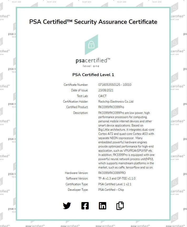 1. RK3399Pro及RK3399通過Arm平臺安全架構(gòu)PSA認(rèn)證