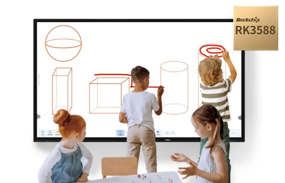 區(qū)別于傳統(tǒng)僅用于教學(xué)演示的大屏,搭載RK3588RC系列集高清顯示、交互式電子白板、電腦、電視、音箱等多功能于一身,可實(shí)現(xiàn)內(nèi)容數(shù)字化和學(xué)情數(shù)據(jù)化,具備人機(jī)交互、智能識(shí)別、學(xué)習(xí)數(shù)據(jù)分析等功能。
