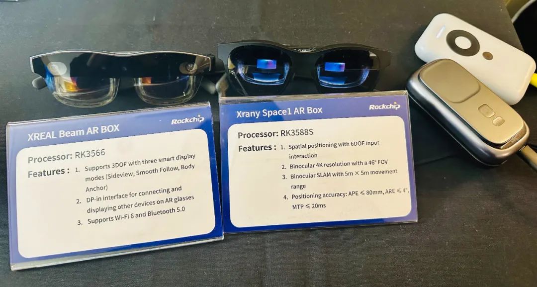 采用RV1106BAI智能眼鏡備受關(guān)注,支持錄制最高 500 30FPS視頻,拍照達1200萬,集成多幀降噪、HDR拍攝、EIS電子防抖、暗光增強等技術(shù),全方位提升影像品質(zhì)。2M視頻功耗250mw,待機功耗低至2mw智能音頻展區(qū)展出了采用RK3308RK2118的系列音頻產(chǎn)品,包括Party Box、汽車音頻、Soundbar等應(yīng)用,基于瑞芯微自研的人聲及樂器分離算法,能實現(xiàn)多種音頻的音軌分離,從而滿足k歌,樂器演奏等產(chǎn)品需求;也可以結(jié)合瑞芯微環(huán)繞音效算法,提供精準的中置聲道人聲增強和立體環(huán)繞聲場效果。