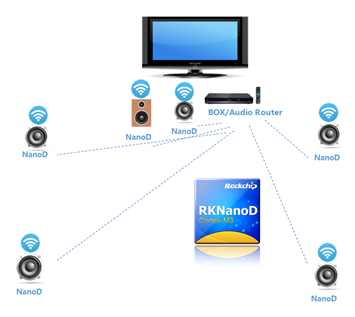 Based on Rockchip RKNanoD, Wireless HomeTheater Speaker is developed by China unicom 4K Laboratory and Rockchip, truly achieving 5.1 surround sound effect.  Built-in D/A, RKNanoD ensures audio data to be high quality recovered. The Wireless Home Theater Speaker uses WiFi as data transmission channel instead of audio cables, which is easier to facilitate the surround sound system at any time. The Wireless Home Theater Speaker adopts channel detection technology, to avoid other signal interference at the greatest extent, ensuring the sound quality and stability of the system.