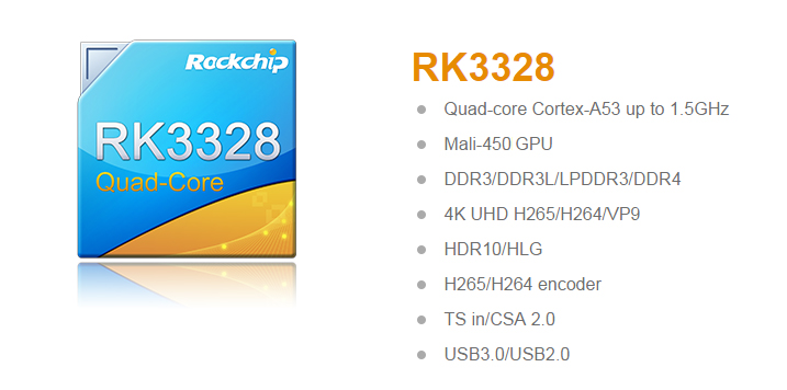 Upgraded RK3328 positioned to medium and high-end solution supports USB3.0 and Giga ethernet, and technically solves the problem of real-time transmission of UHD videos.